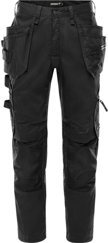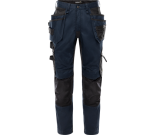 Rakentajan housut neljään suuntaan joustavilla stretch paneeleilla. Valmistettu kevyestä ja kestävästä materiaalista, jossa mekaaninen jousto, osa materiaalista kierrätettyä polyesteria. Mukavat työhousut, joissa kaikki tarvittavat toiminnot ja ominaisuudet. Konsepti: Alnaryd