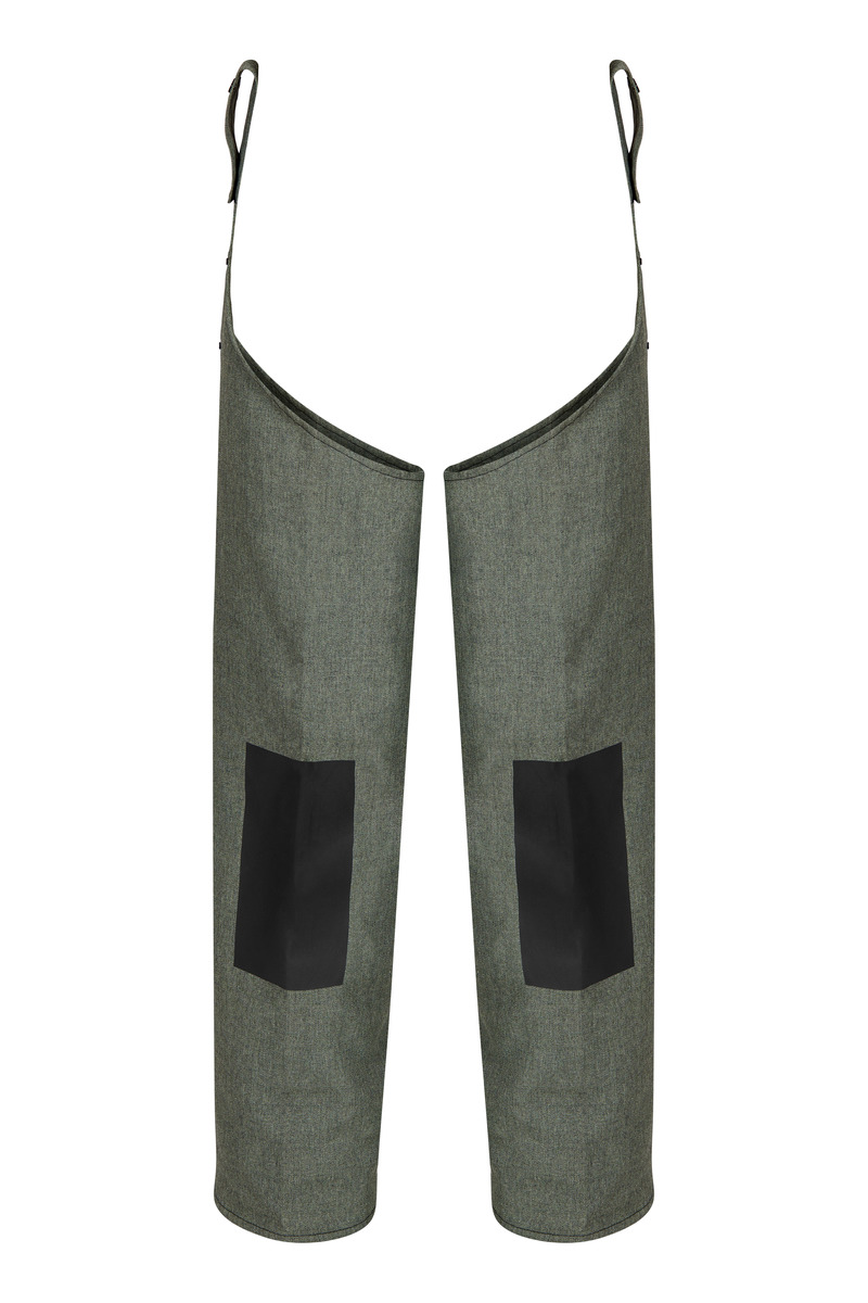 The chaps can be easily attached to a Flame Retardant belt and can be adjusted to different heights. Rubber strengthening on knees. Works well in combination with apron 5575 19.