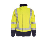 Non-metal and Inherent Flame Retardant Hi-Vis winter ladies jacket with vertical chest pockets, fiberfur lining in body and quilt lining in sleeves.