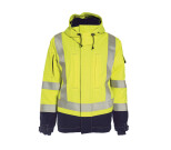 Flame Retardant Hi-Vis winter jacket with winter lining. Fleece on the inside of the collar. Hidden zip and stud fastener in front. Removable hood with PU laminated jersey lining, adjustable width and opening. Vertical chest pockets with zip. Vertical side pockets with fleece lining. Left sleeve pocket with flap, hidden keyring holder and strap for ID-pocket. Right sleeve pocket with zip. Two inside pockets with zip, one for Ipad/documents. Wind stoppers in sleeves. Adjustable cuffs. Draw cord at the bottom of the jacket. Zip access for back heat seal badges. *To meet the requirements according to EN 13034, the hood must be in use or removed. **The garment is tested in a 3 layer system together with basic underwear. Tranemo recommends underwear 5920/5940 and 5980.