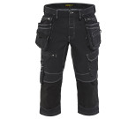 Kestävät piraattihousut CORDURA®Denim stretch kankaalla sekä stretch-kangasosiolla haaroissa erinomaista liikkuvuutta varten. CORDURA®-stretch polvisuojataskut, joihin polvisuojat asetetaan yläpuolelta.