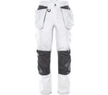Mukavat ja monilla toiminnoilla varustetut työhousut kulutusta kestävää 100% puuvillaa, joka imee hyvin esim. maalia ja sopii siksi erinomaisesti maalareille. Naisten malli.