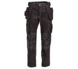 Side pockets. HTPA Dobby lined nail pockets with loop strip for hanging multiple tools. Left cargo pocket with mobile pocket and concealed keyring holder. Right cargo pocket with tool/pen pockets. Ruler pocket and knife button with loop. Hip pockets. Two hammer loops. Adjustable HTPA Dobby kneepad pockets. Back hem with HTPA Dobby and press studs for adjustable foot width. Contrast stitching. Pre-washed.